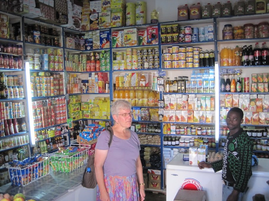 We have been shopping at Mama Miho's grocery the past few months. Her store is away from downtown and has better prices and warmer customer service. Her store is like the others in town, packed to the ceiling with inventory, and we have found that we can get pretty much anything we are looking for. The only food item I would bring in the future would be spices, except for pepper and cinnamon in the market, we do not get penzies quality spices here. Most of the merchandise in the groceries comes from outside Tanzania, although they do have a good dairy here for milk and yogurt and a local cheese. I made spaghetti the other night with fresh tomatoes, green pepper, and onion from the market but the rest was spaghetti from Iran, tomato paste from Oman, dried basil packed in Kenya, olive oil from Spain, and cookies for dessert from South Africa. This is typical because the Tanzanian economy is so agriculture based. Fresh produce they do well and we have been having the best avocados I have ever seen, perfect texture and you can peel them like bananas.